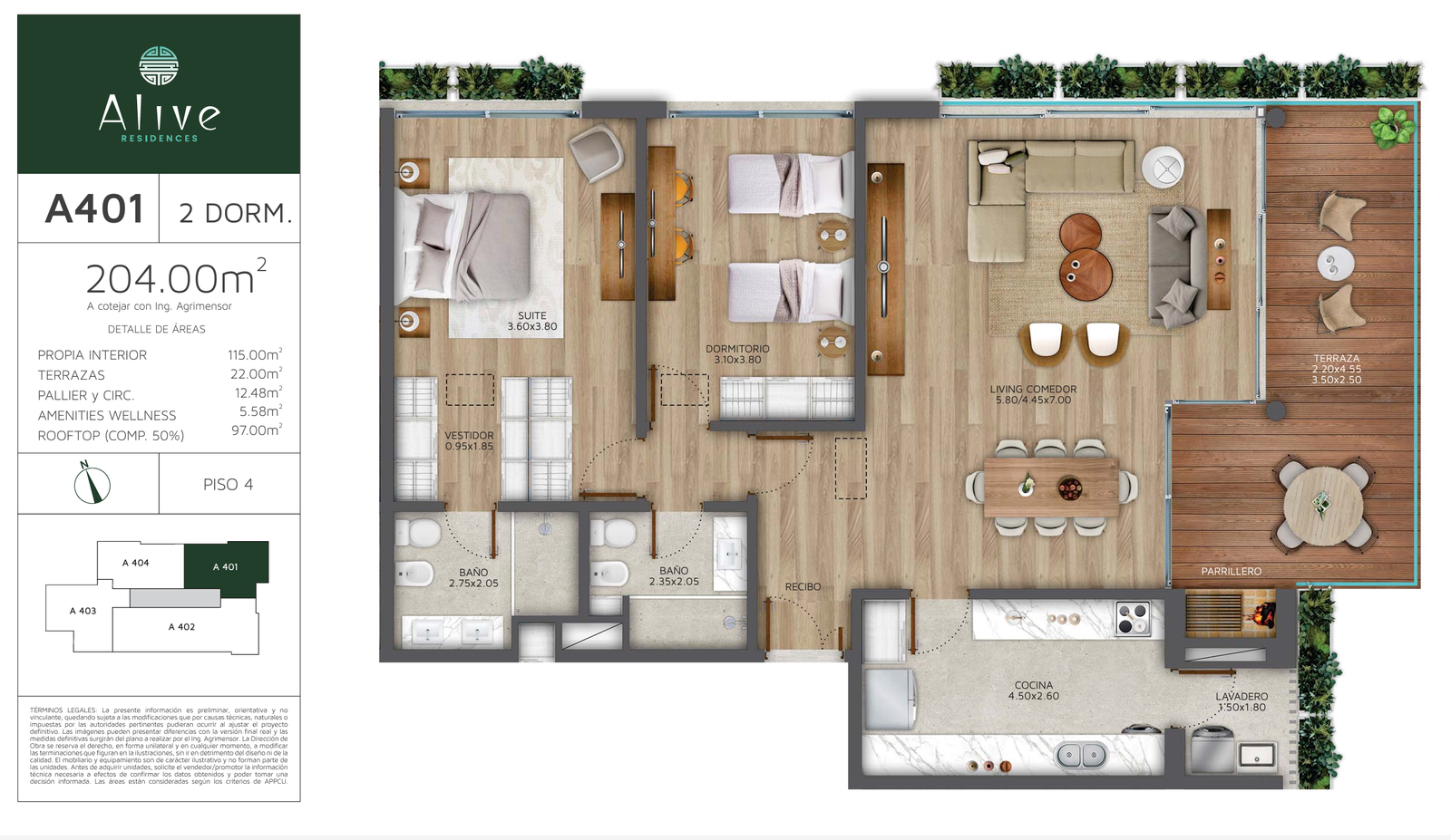 | 401 A | 2 | 115 | 97 | 1 | Venta | USD 680.000 |