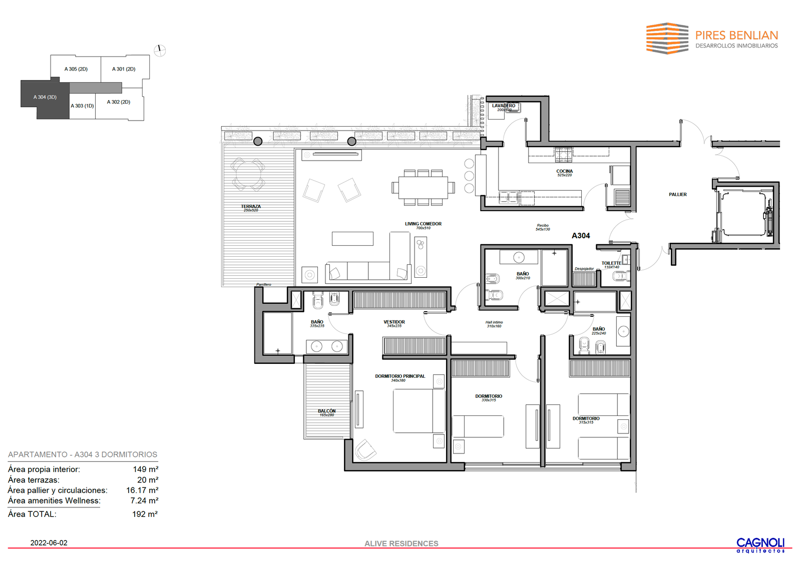 | 304 A | 3 | 192 | 20 | 1 | Venta | USD 735.000 |