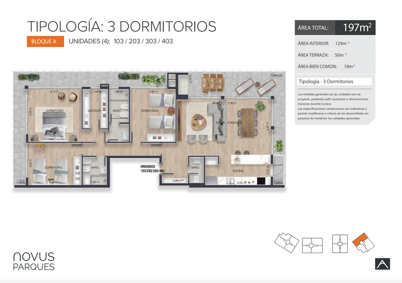 | 203 A | 3 | 129 | 50 | 0 | Venta | USD 558.800 |