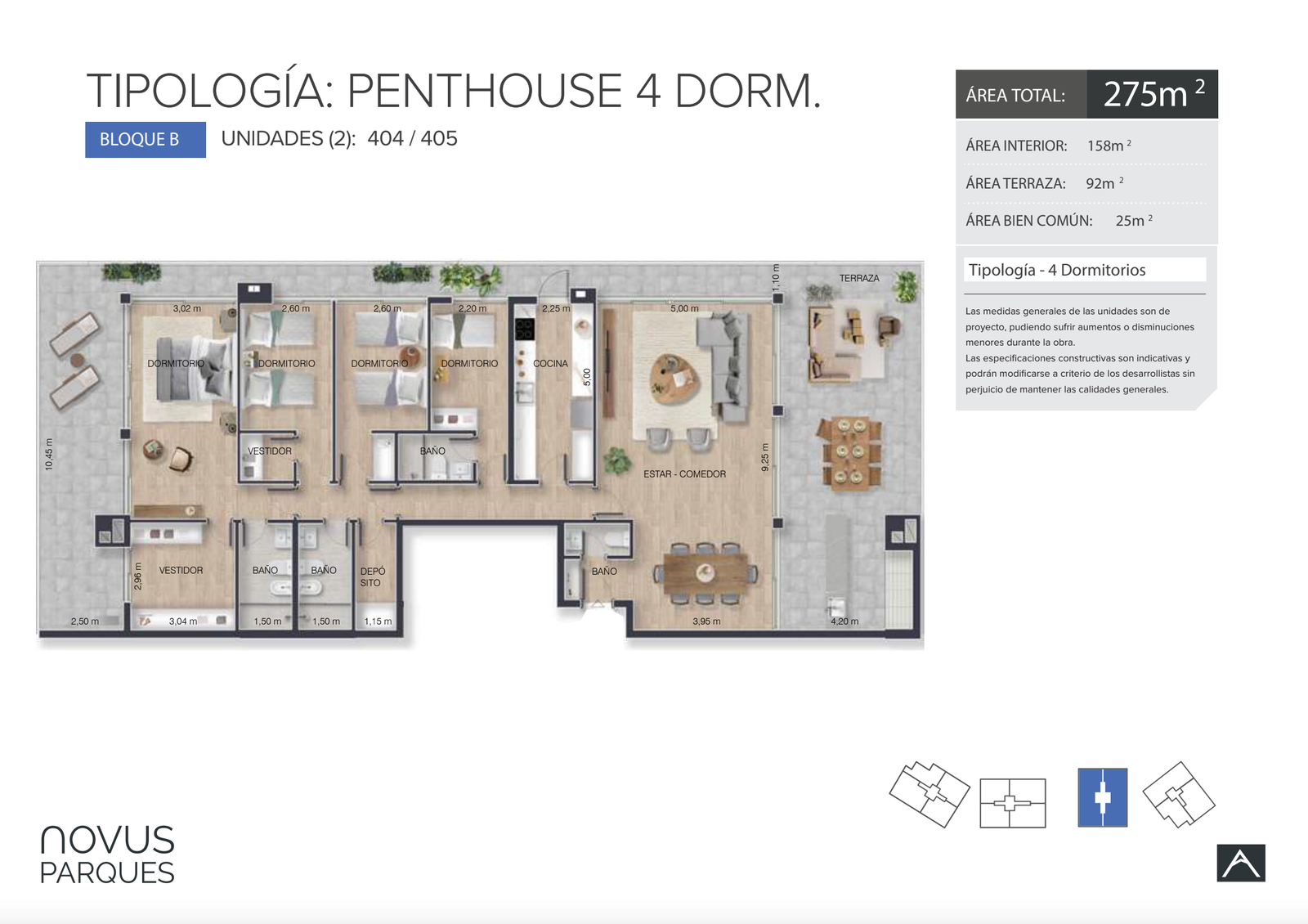 | Unidad | Dormitorios | Metraje | Terrazas | Garages | Status | Precio |