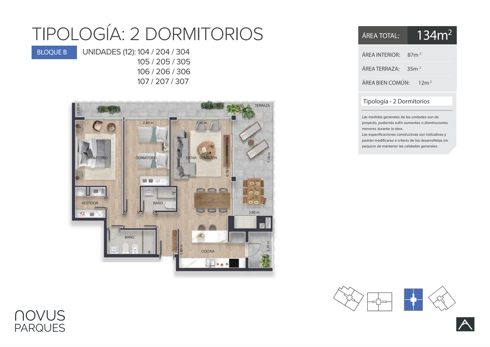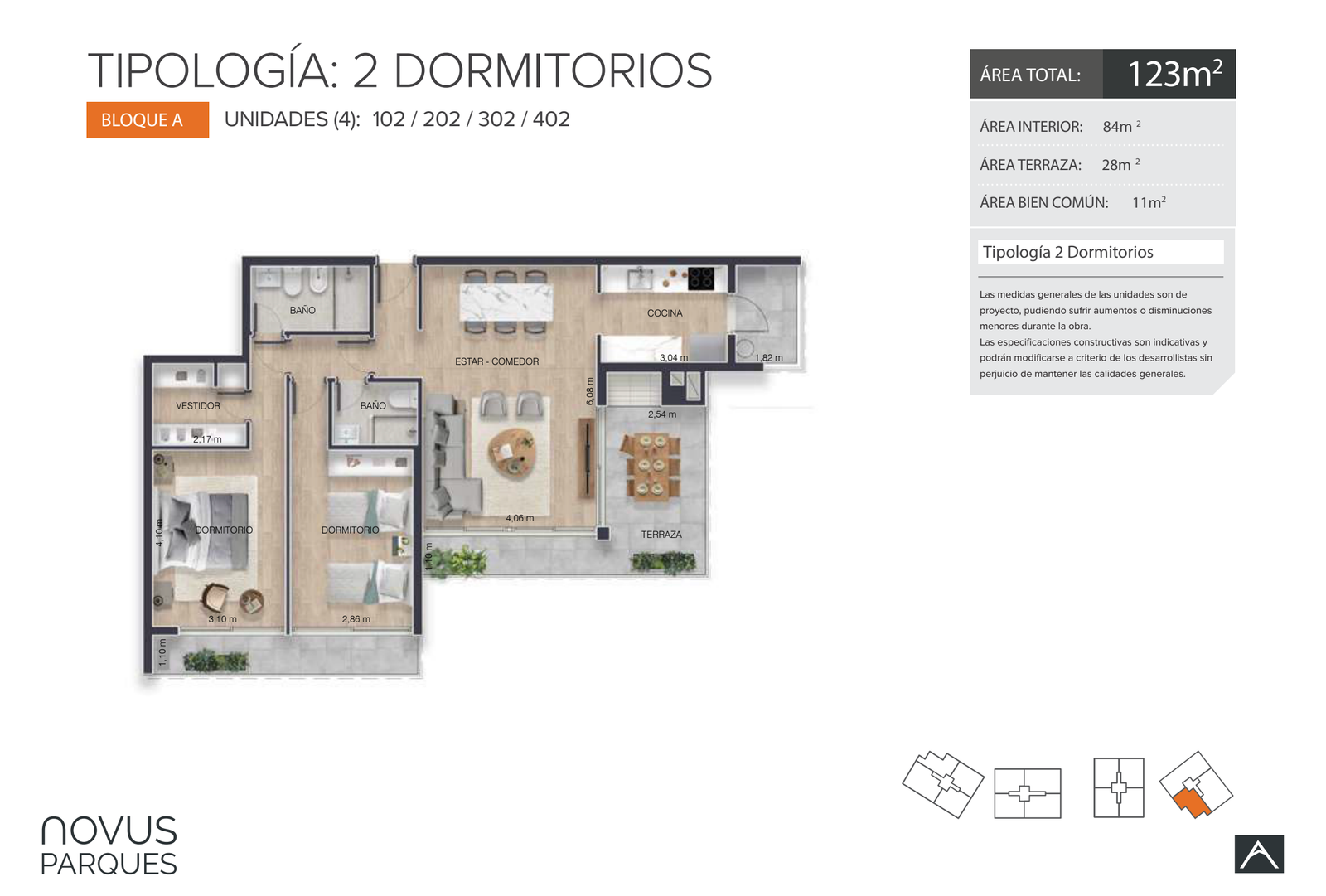 | 102 A | 2 | 84 | 28 | 0 | Venta | USD 361.700 |