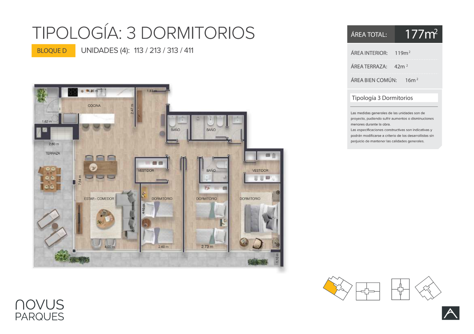 | 213 D | 3 | 119 | 42 | 0 | Venta | USD 448.800 |
