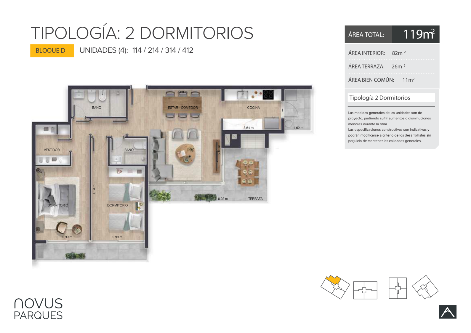 | 114 D | 2 | 82 | 26 | 0 | Venta | USD 438.800 |